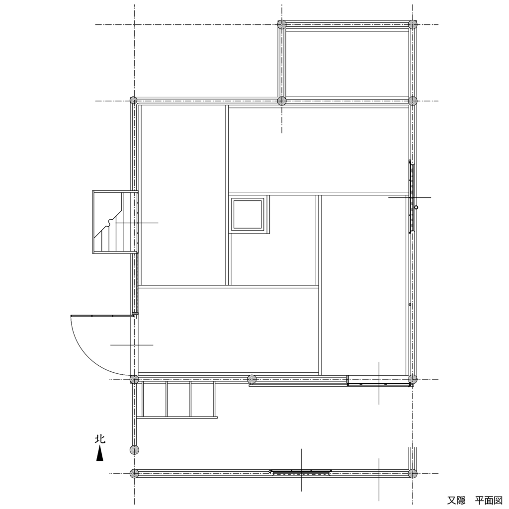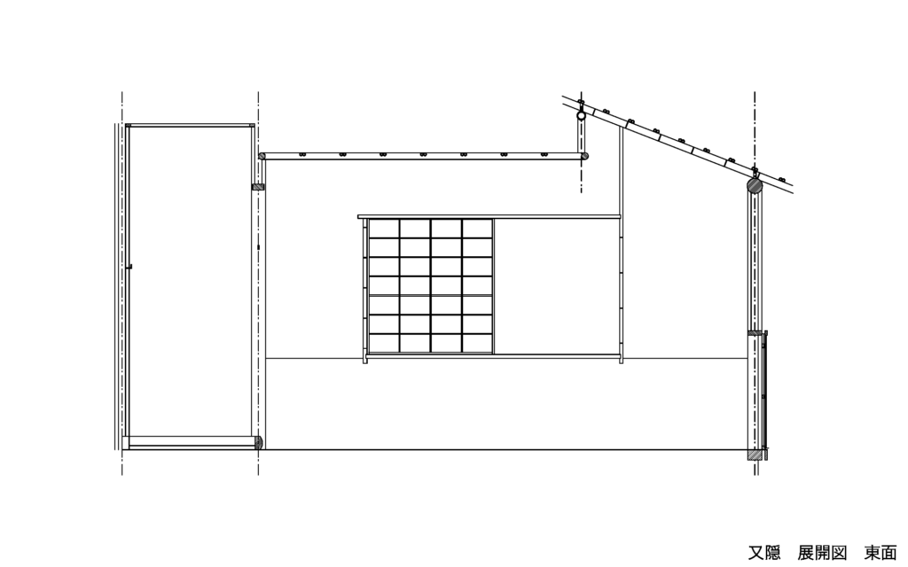 | 千宗旦が一度隠居し今日庵を建てた後、再度ふたたび隠居した時、また隠居すると伝わる「又隠」は利休の完成した草庵風四畳半を再現したものとみられ典型的な基準とされる茶席。創建時の席は天明8年(1788)の大火で消失し現在の席は翌寛政元年(1789)に再建されたと伝わる。 |